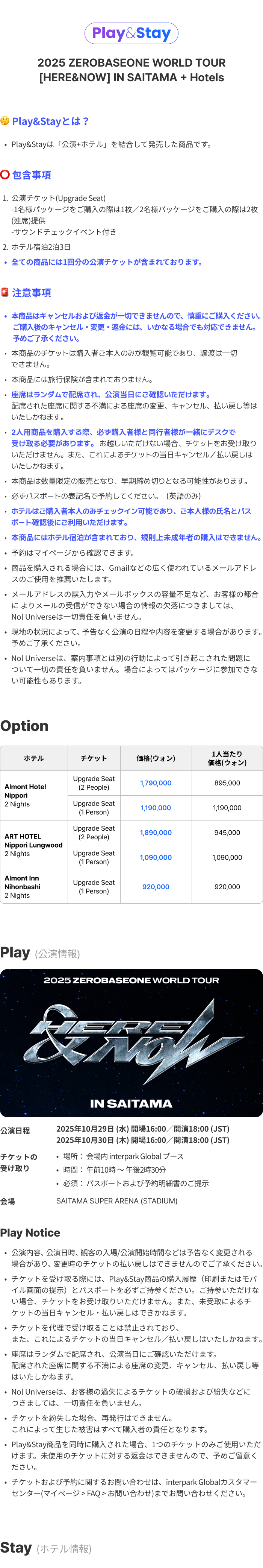 -本商品は 株式会社NOL Universe がコンサートチケットおよびホテルを事前に購入・確保したパッケージ商品であり、特別約款 が適用されます。